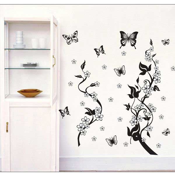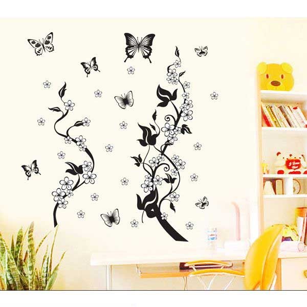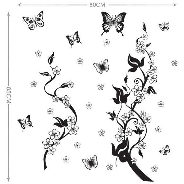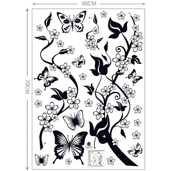 TipTop Muurstickers Zwart Bloemen & Vlinderpatroon