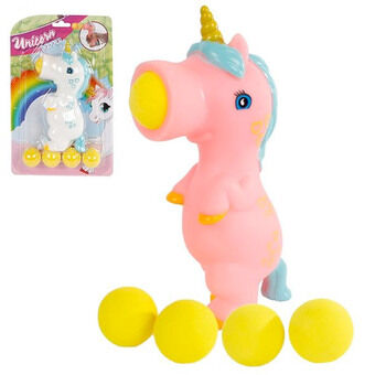 Een eenhoorn waarmee ballen afgeschoten kunnen worden, inclusief 5 ballen.