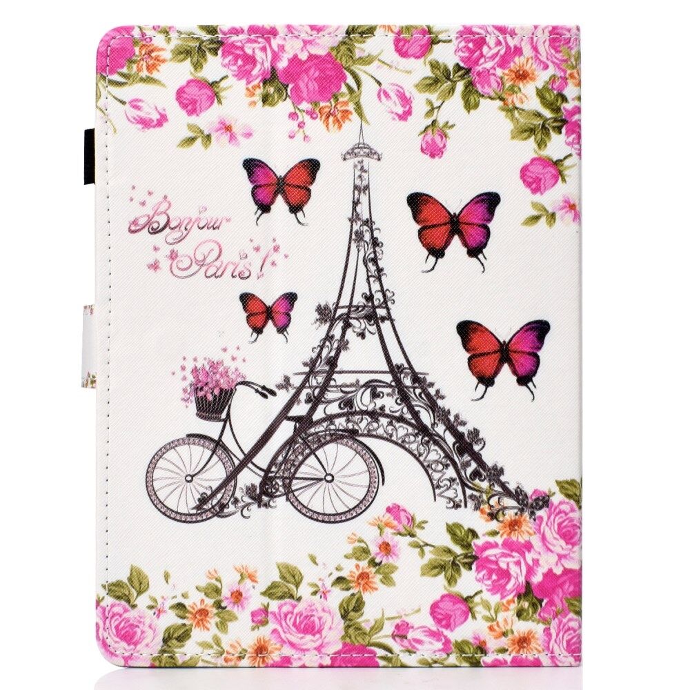 Universal 10-inch patroon tablet PU lederen kaarthouder hoes voor iPad 9.7 (2018) / Samsung Tab S3 9.7 etc - Eiffeltoren en bloem
