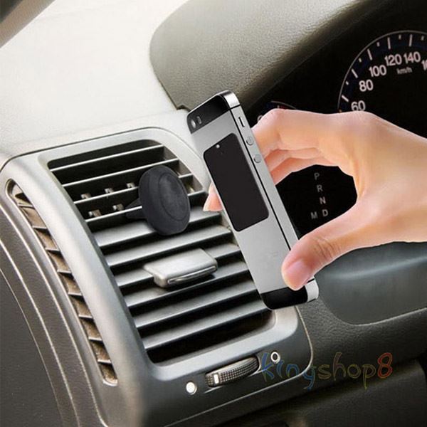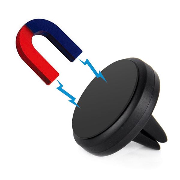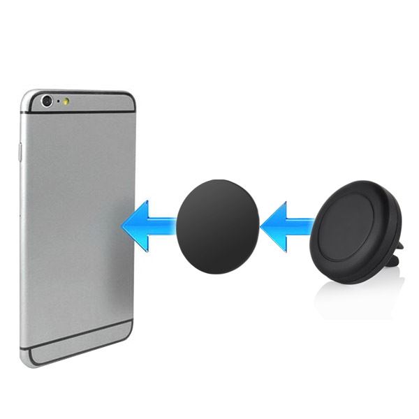 Voor weinig geld kunt u uw telefoon nu eenvoudig en eenvoudig op de schijf beveiligen. De houder wordt in de luchtkanalen van de auto gemonteerd en de dunne magnetische plaat met lijm wordt op de achterkant van de telefoon geplaatst.