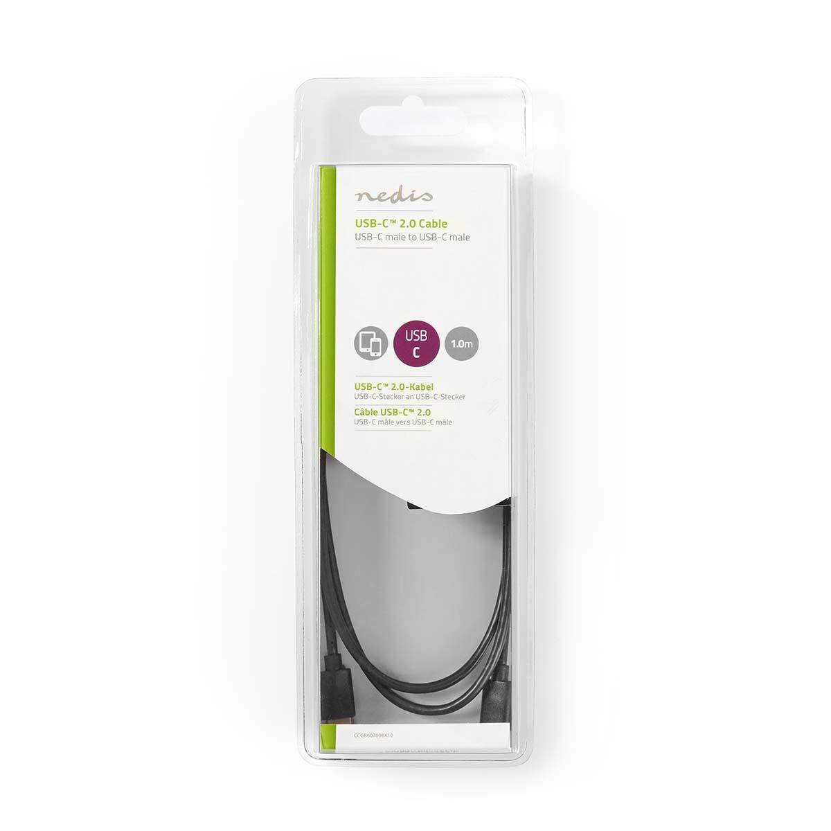 USB-kabel | USB Type-C™ mannelijk | USB-C™ hij | Vernikkeld | 1.00 meter | Ronde | Pvc | Zwart | Blaren