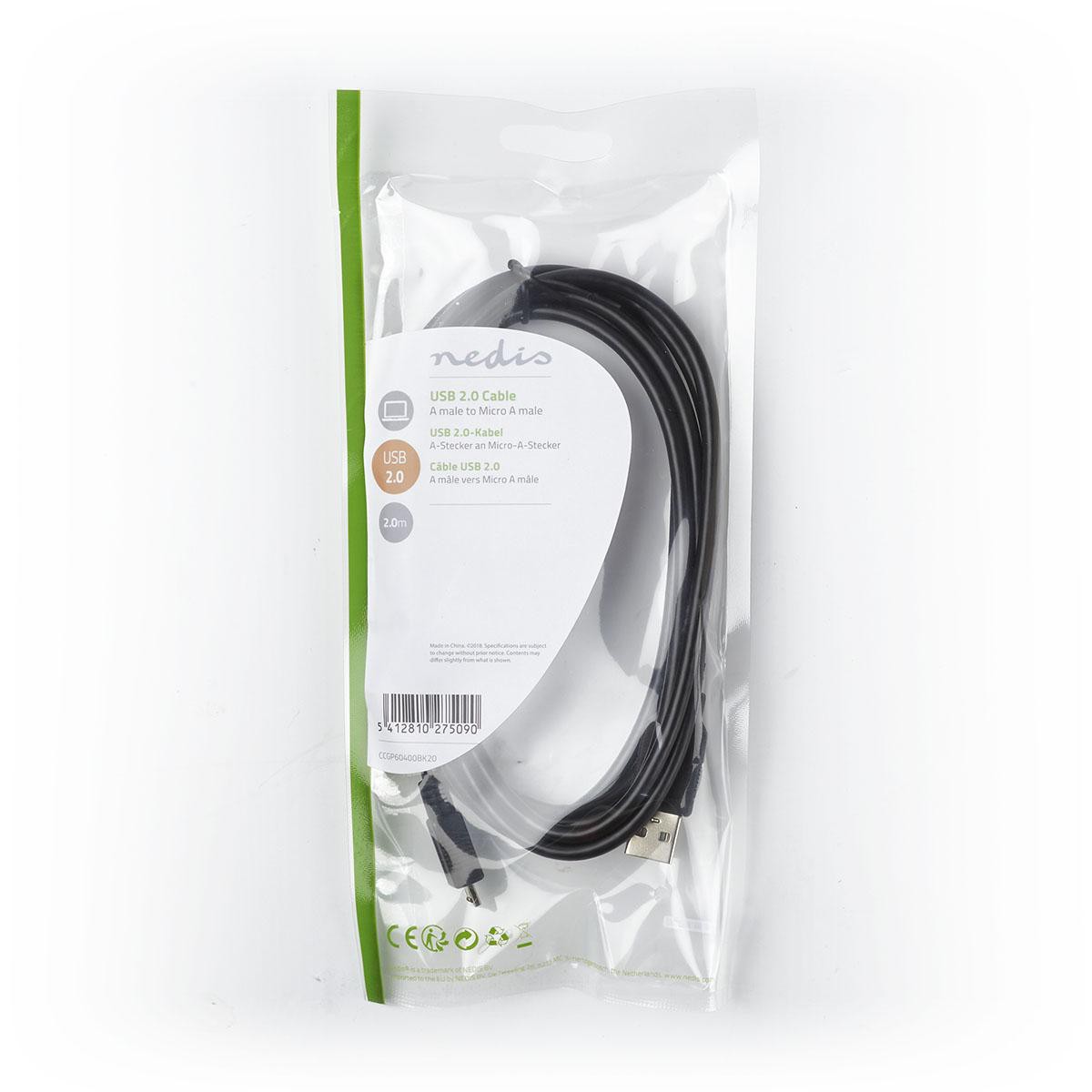 USB-kabel | USB 2.0 | USB-A-stekker | USB Micro-A | 480 Mbps | Vernikkeld | 2.00 meter | Ronde | Pvc | Zwart | Plastieken zak