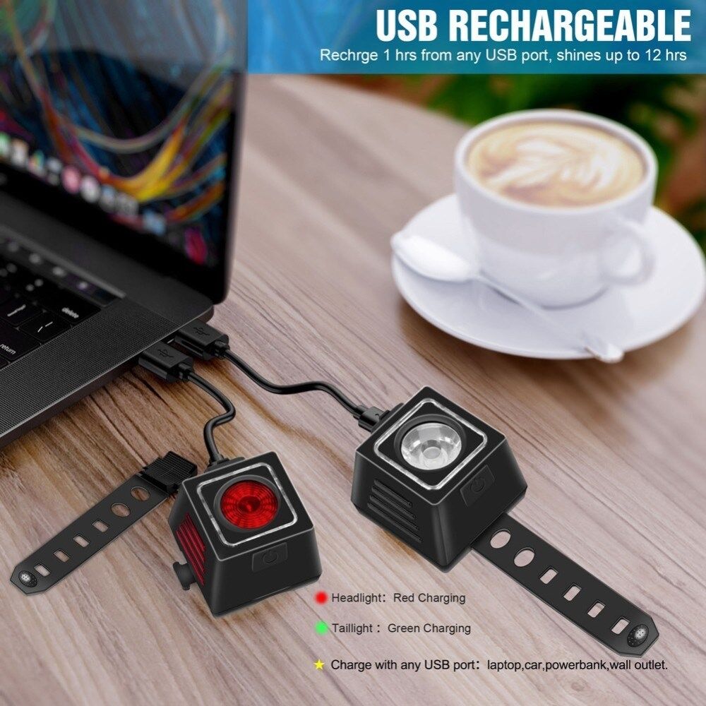 Zowel de voor- als achterlichten hebben een ingebouwde oplaadbare batterij, een laag stroomverbruik en een lange levensduur. Het ondersteunt aangedreven door pc/laptop, powerbank, USB-hub, enz.