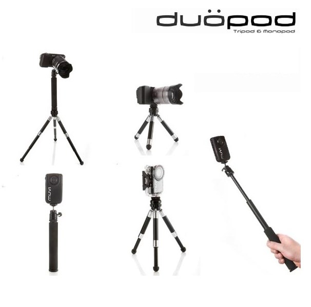 Duopod is een 2-in-1 kwaliteitsset met twee standaards. Mini-monopod met foam grip en verstelbare multi-angle camera mount en vier telescopische secties waarmee je de perfecte selfie kunt maken. Tegelijkertijd kun je hem gebruiken met de MUVI HD action camera om jezelf snel en in beweging te filmen. Statief met 3 uitschuifbare rubberen antislippoten en meer dan 30 positioneringscombinaties, u kunt de perfecte foto's maken, timelapse of video opnemen, wat ideaal zou kunnen zijn voor feestevenementen.