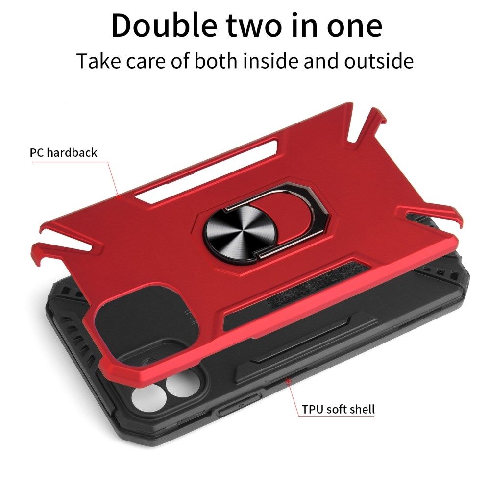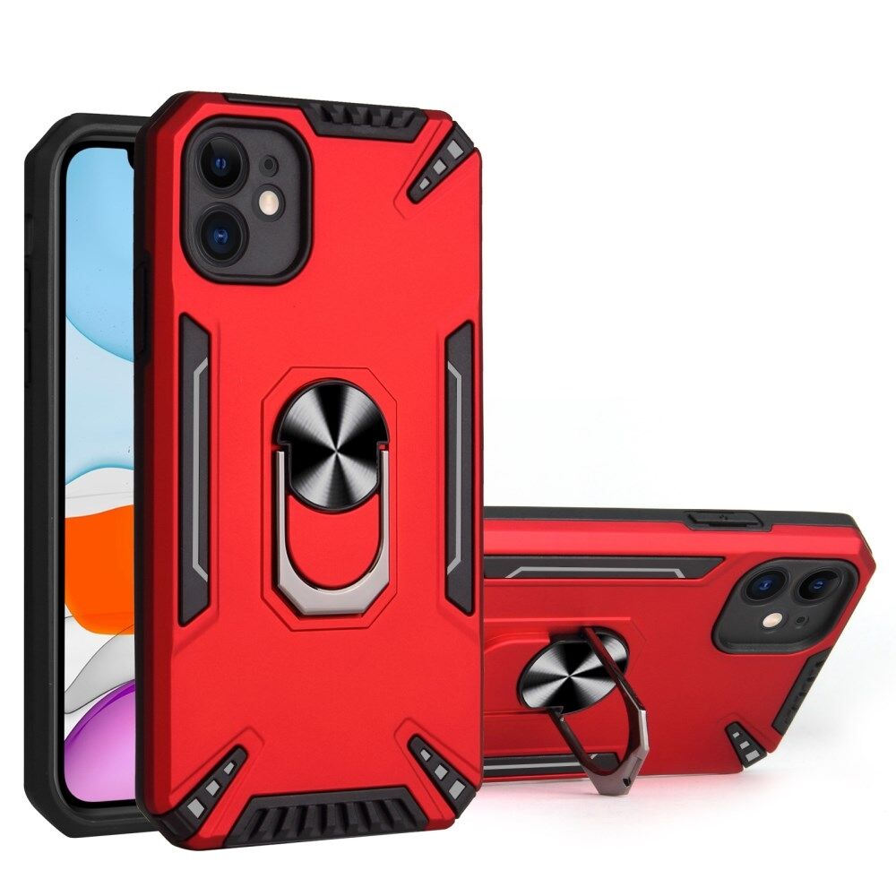 Verstelbaar standaardontwerp 2-in-1 dubbele bescherming hybride telefoonhoes Cover Shell met ingebouwde metalen plaat voor iPhone 11 6.1 inch - rood