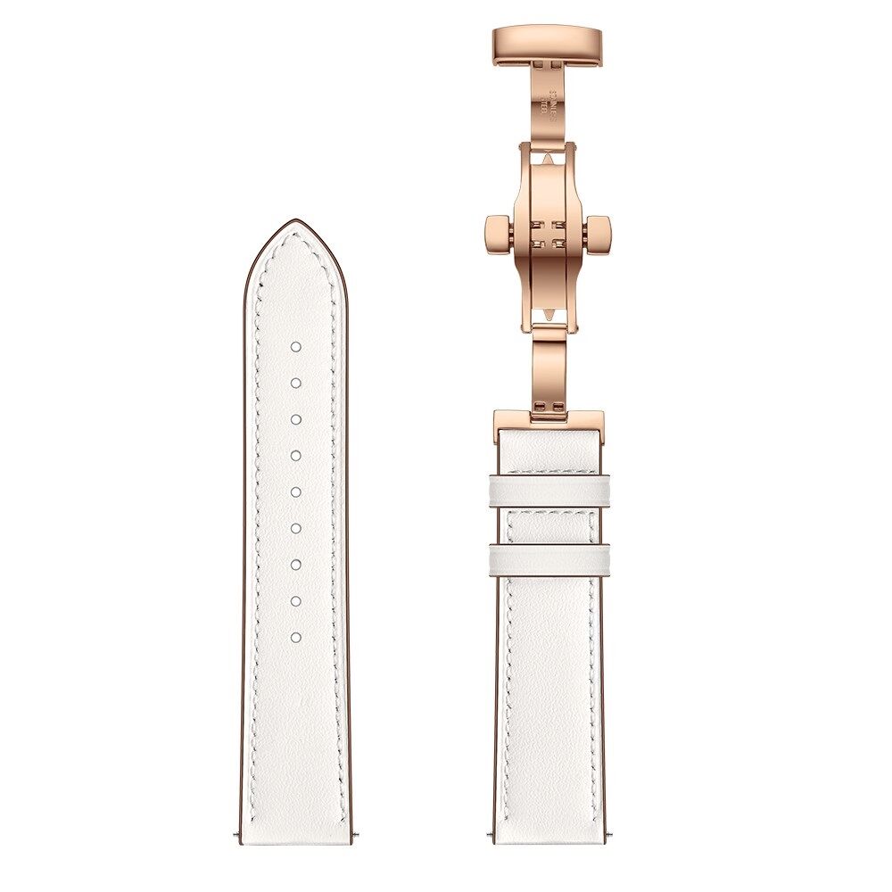 20 mm bovenlaag koeienhuid lederen band vervanging voor Garmin Vivoactive 3 / Vivomove HR - Rose goud + wit