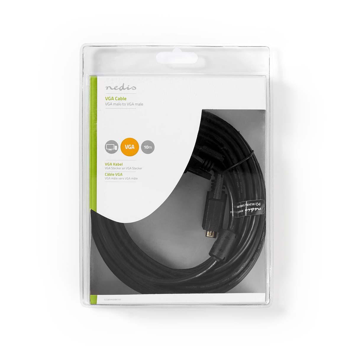 VGA-kabel | VGA-mannetje | VGA-mannetje | Vernikkeld | Maximale resolutie: 1024x768 | 10,0 meter | Ronde | ABS| Zwart | Blaren