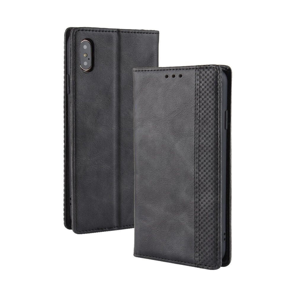 Vintage Style Leather Wallet Cover voor iPhone XS Max 6.5 inch - Zwart