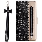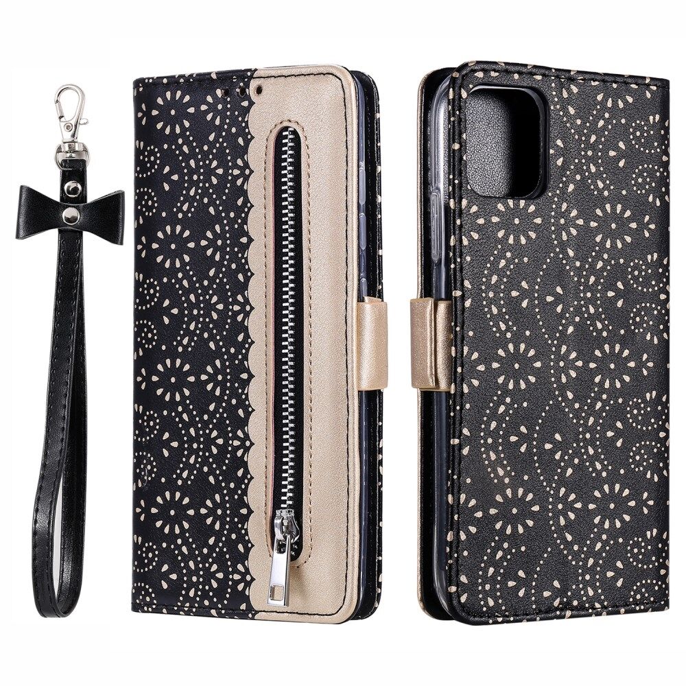 Volledige beschermende anti-drop portemonnee met ritssluiting en kanten lederen hoes voor iPhone 13 mini 5.4 inch - zwart