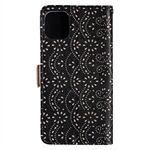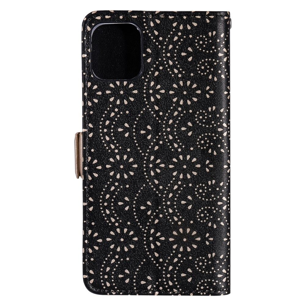 Volledig beschermende portemonnee met ritssluiting en kanten leren hoes voor iPhone 13 mini - zwart
