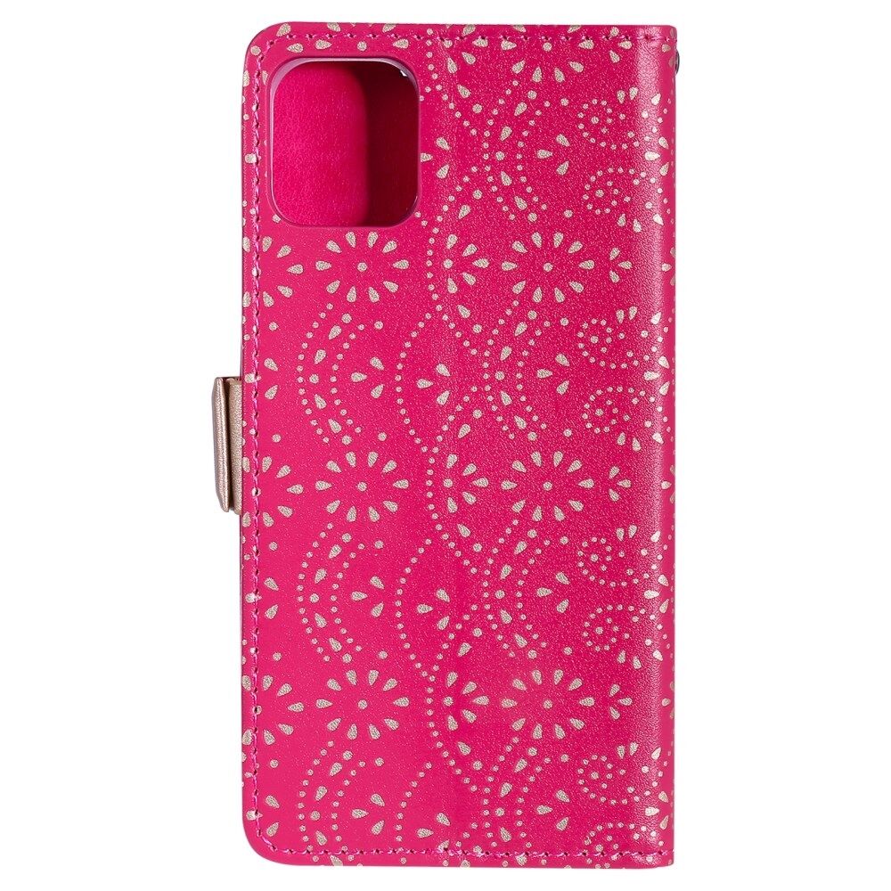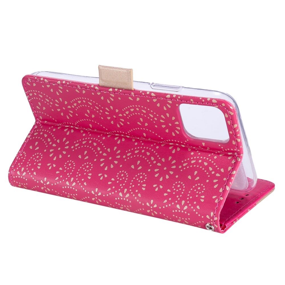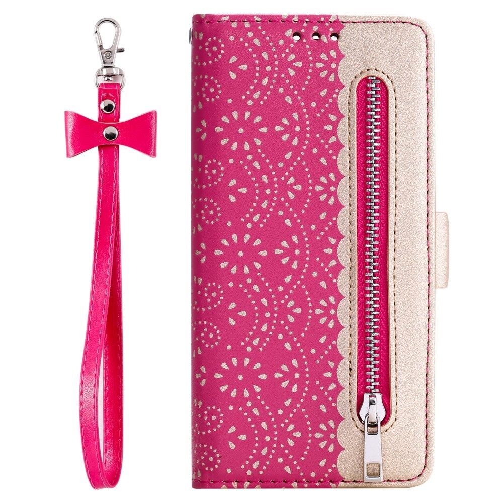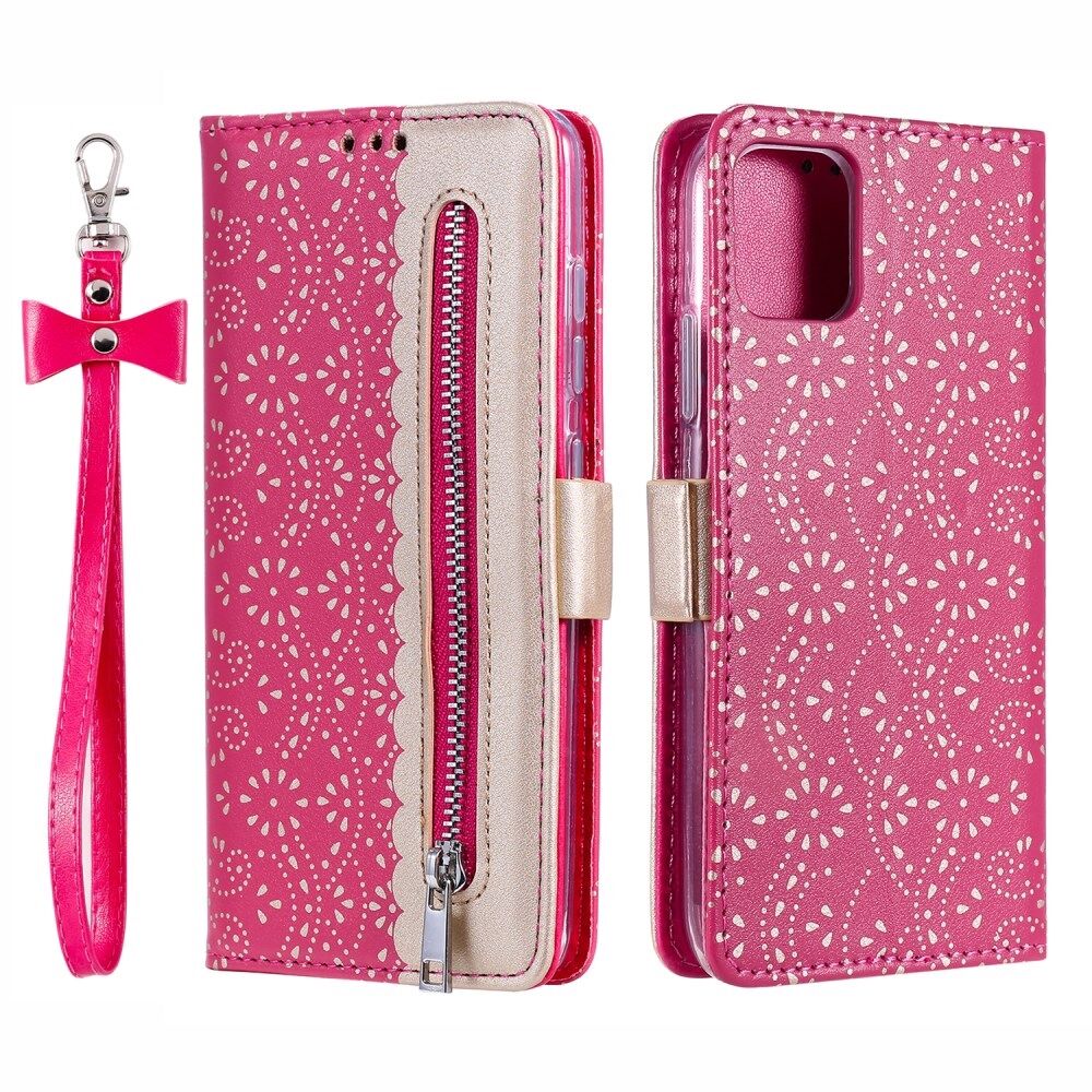 Volledig beschermende portemonnee met ritssluiting en kanten leren hoes voor iPhone 13 mini - Rood