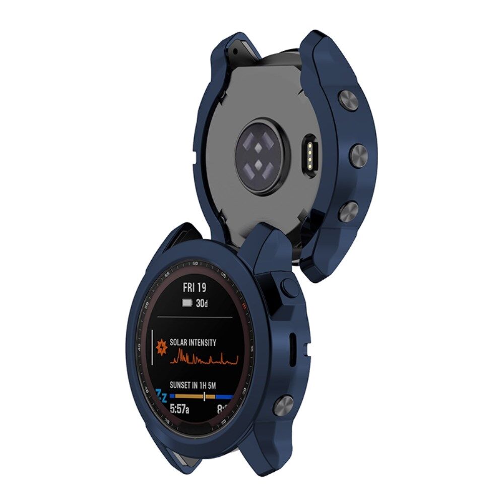 Voor Garmin Fenix ​​​​7X / Fenix ​​​​7X Solar Electroplating Soft TPU Hollow Out Bumper Frame Cover Cover - Midnight Blue