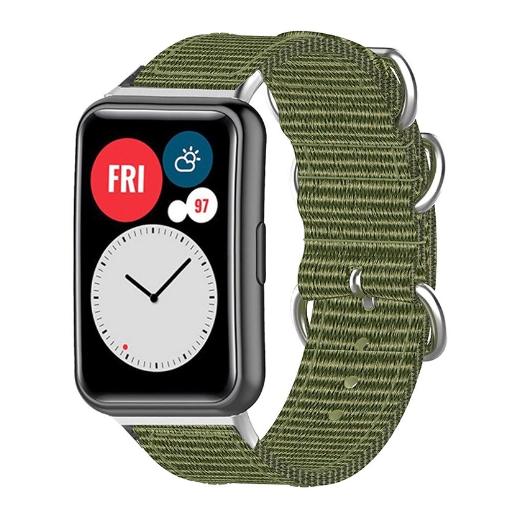 Voor Huawei Watch Fit 2 Nylon Quick Release horlogeband Roestvrij Steel ringen Gesp Canvas vervangende riem - Legergroen