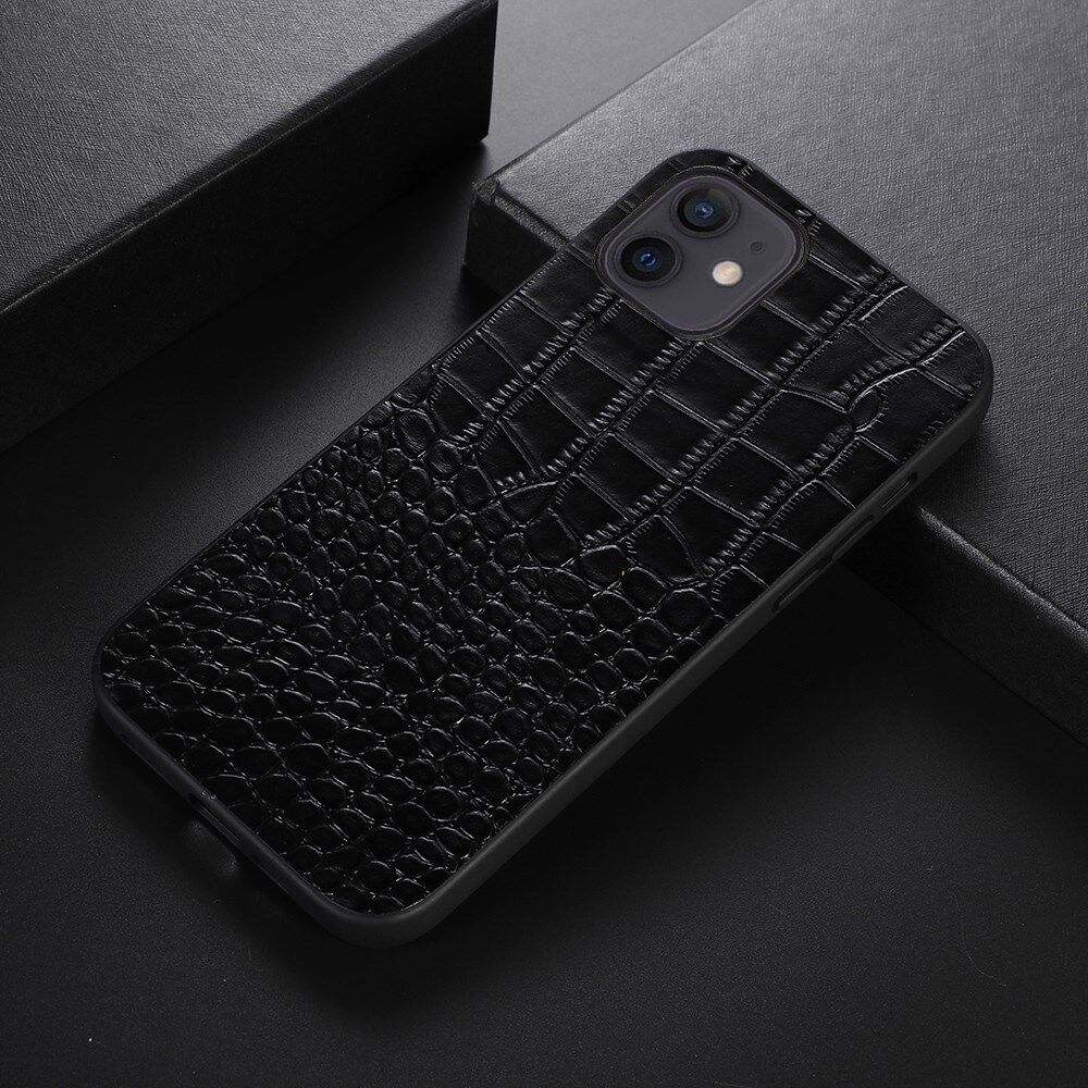 Voor iPhone 12 mini 5.4 inch Echte koeienhuid lederen coating PC + TPU Goed beschermde krokodiltextuur Anti-val telefoonhoes - zwart
