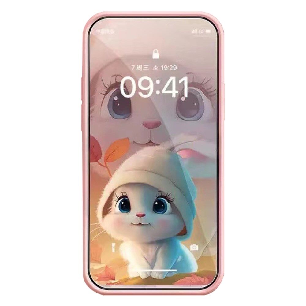 Voor iPhone 12 Pro Max 6.7 inch Konijn en Bladeren Patroon Valbestendig Telefoonhoesje Gehard Glas + TPU Telefoon Achterkant - Roze