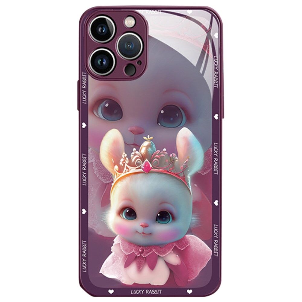 Voor iPhone 13 Pro Max 6.7 inch Anti-stof Princess Konijn Patroon Afdrukken Telefoon Shell Gehard Glas + TPU Telefoon Case - Paars