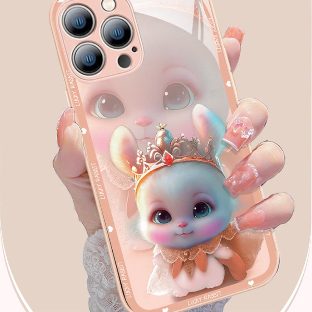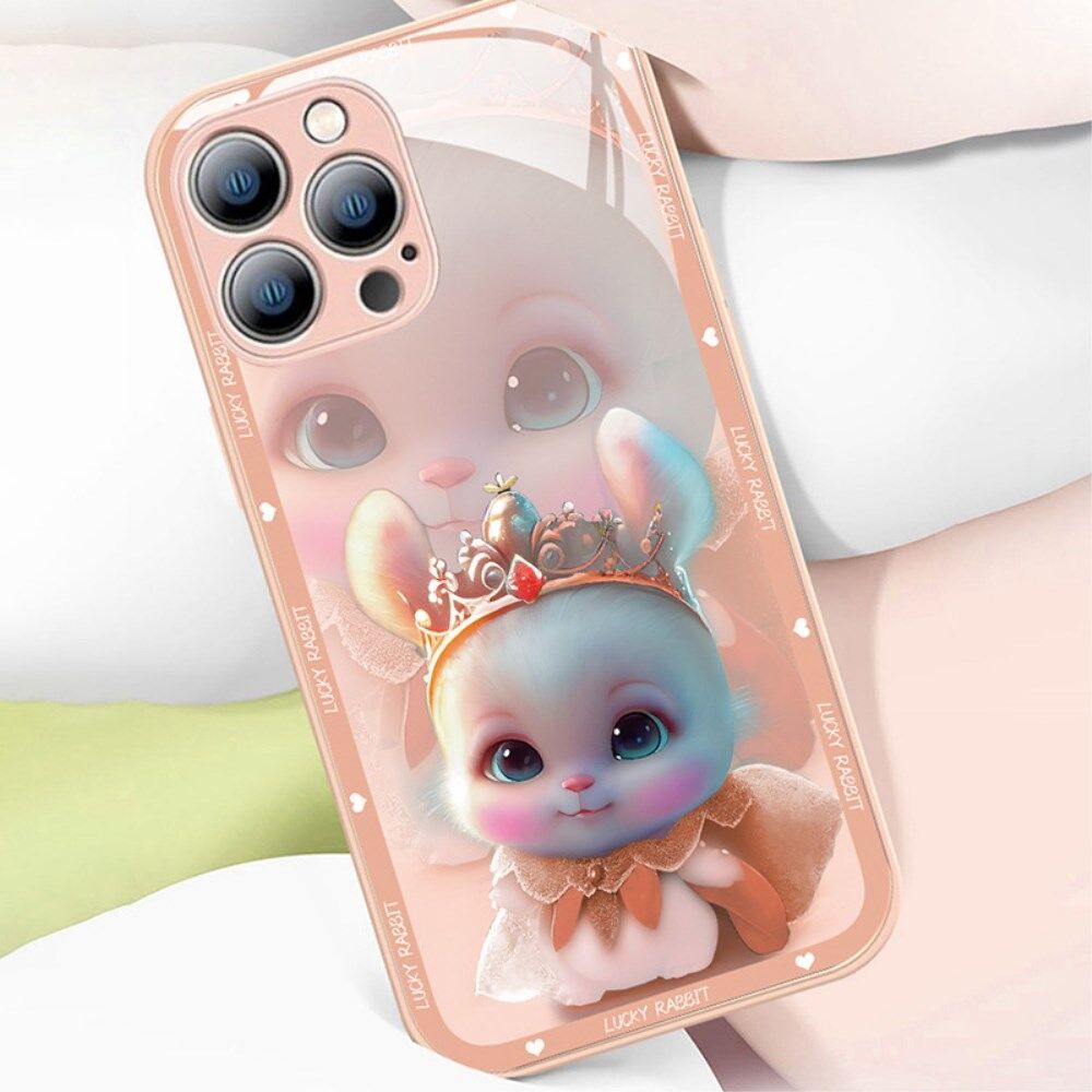 Voor iPhone 13 Pro Max 6.7 inch Anti-stof Princess Konijn Patroon Afdrukken Gehard Glas Telefoon Shell + TPU Telefoon Cover