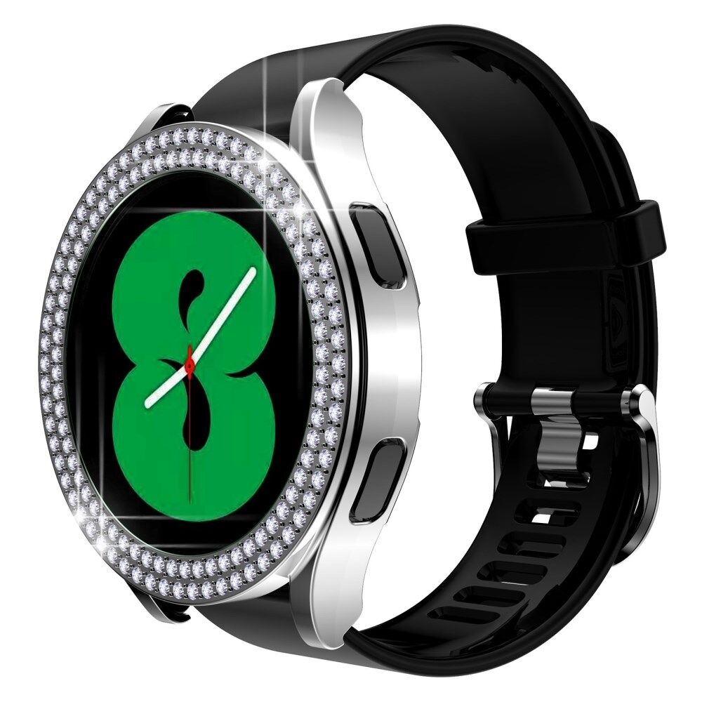 Voor Samsung Galaxy Watch 5 40mm Dubbele Strass Decor PC Watch Beschermhoes Half Cover - Zilver