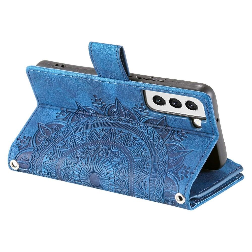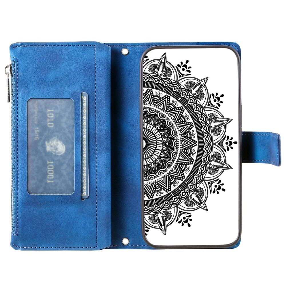 Voor Samsung Galaxy S21 5G Mandala Bloem bedrukt Volledige dekking PU lederen telefoonhoes Stand met meerdere kaartsleuven Portemonnee met ritssluiting - Blauw