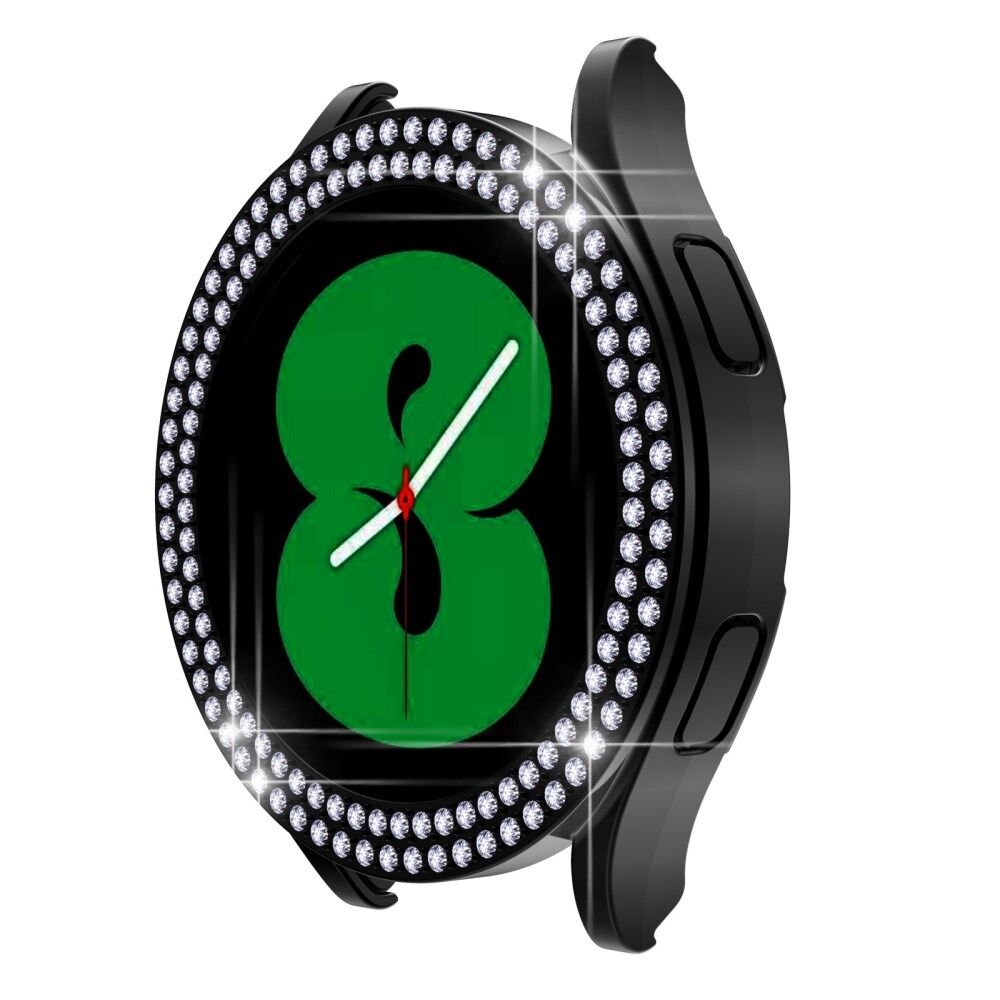 Voor Samsung Galaxy Watch 5 44mm Half Cover Dubbele rij Strass Decor PC Watch Beschermhoes - Zwart