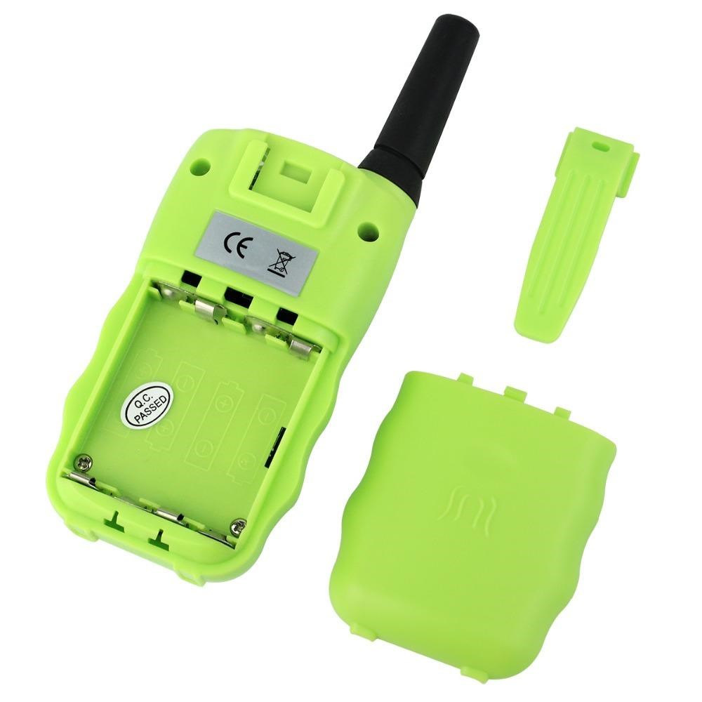 De Walkie-Talkie-set werkt op 2 x 4 AAA-batterijen (niet inbegrepen).