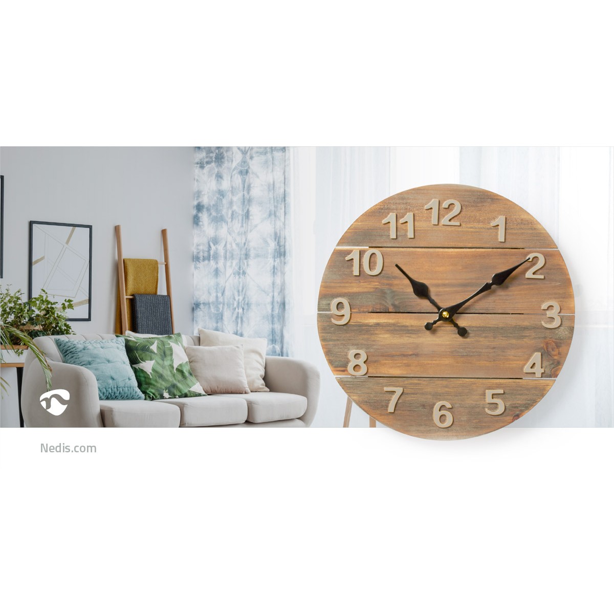 Deze opvallende Nedis® wandklok is gemaakt van echt hout om de kamer de perfecte finishing touch te geven.