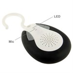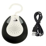 Waterdichte Bluetooth Shower Speaker met FM-functie en microfoon, afmetingen 18 x 9 cm.