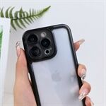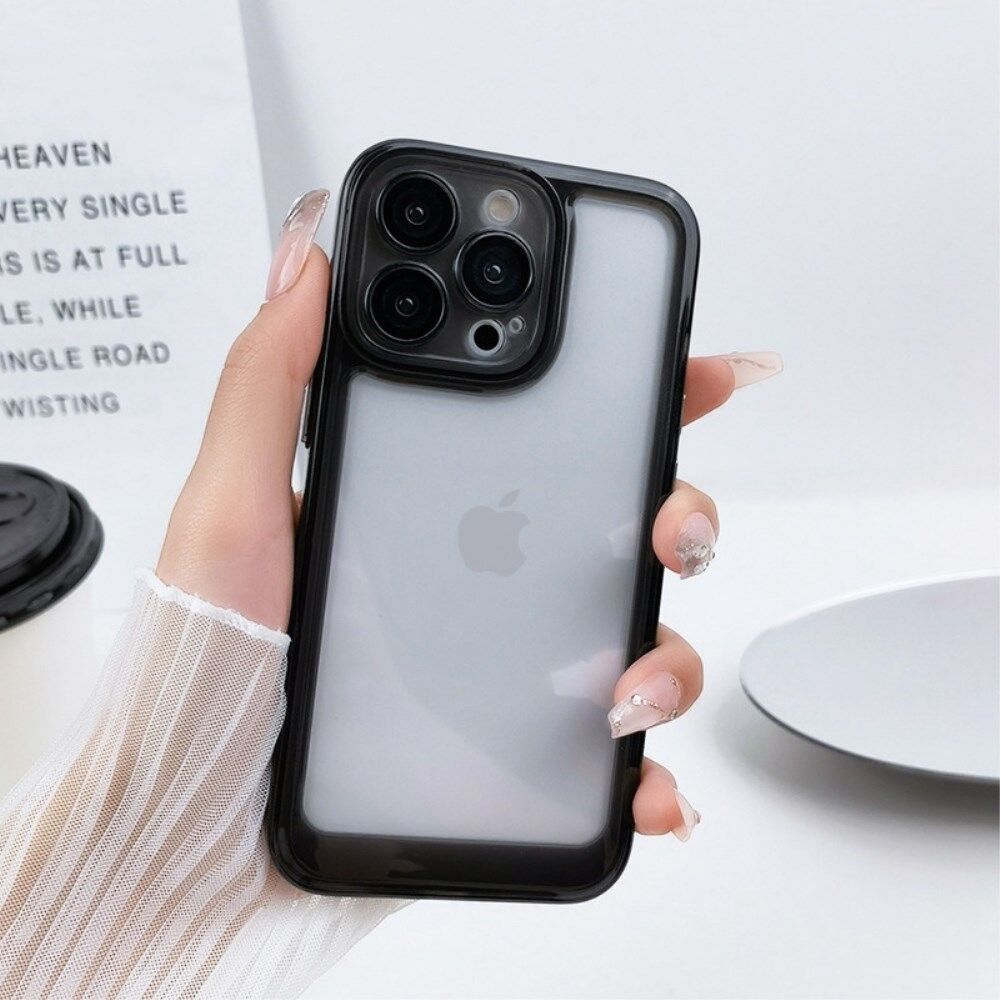 XUNDD Voor iPhone 14 Pro Max Niet-geel Helder TPU Achterkant Metalen onafhankelijke knoppen Telefoonhoes Ingebouwde cameralensbeschermer - Zwart