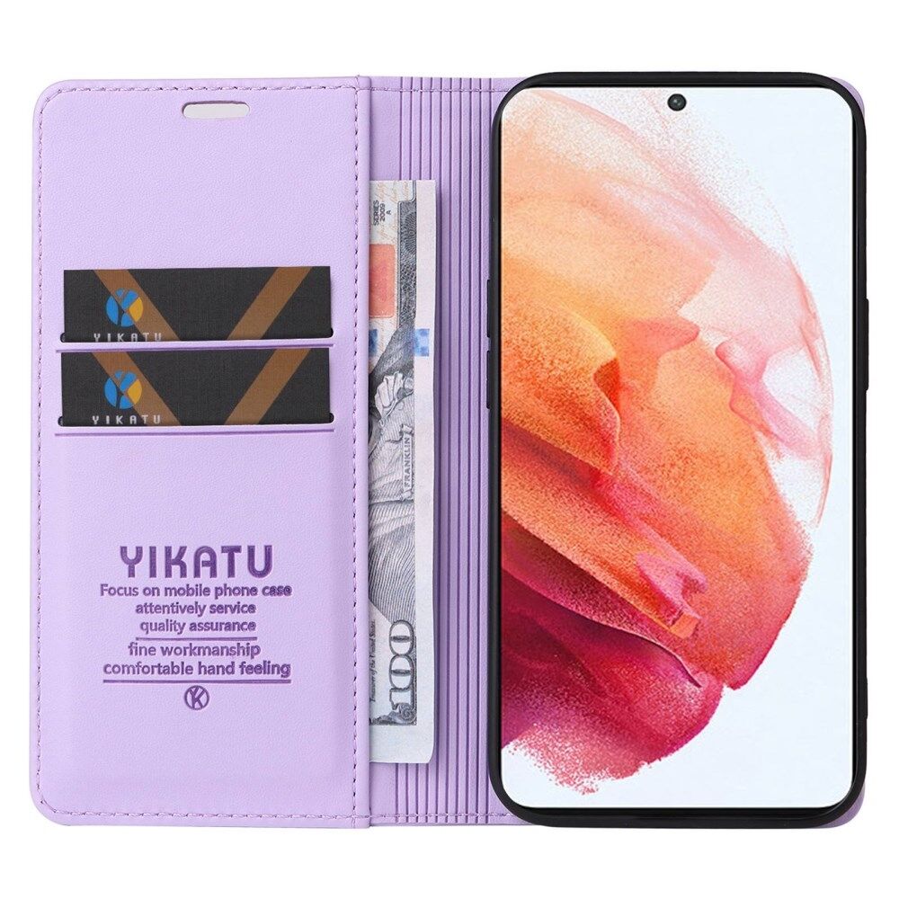 YIKATU YK- 001 voor Samsung Galaxy S21 4G / 5G PU lederen magnetische autoabsorb telefoonhoes Stand folio flip case - lichtpaars